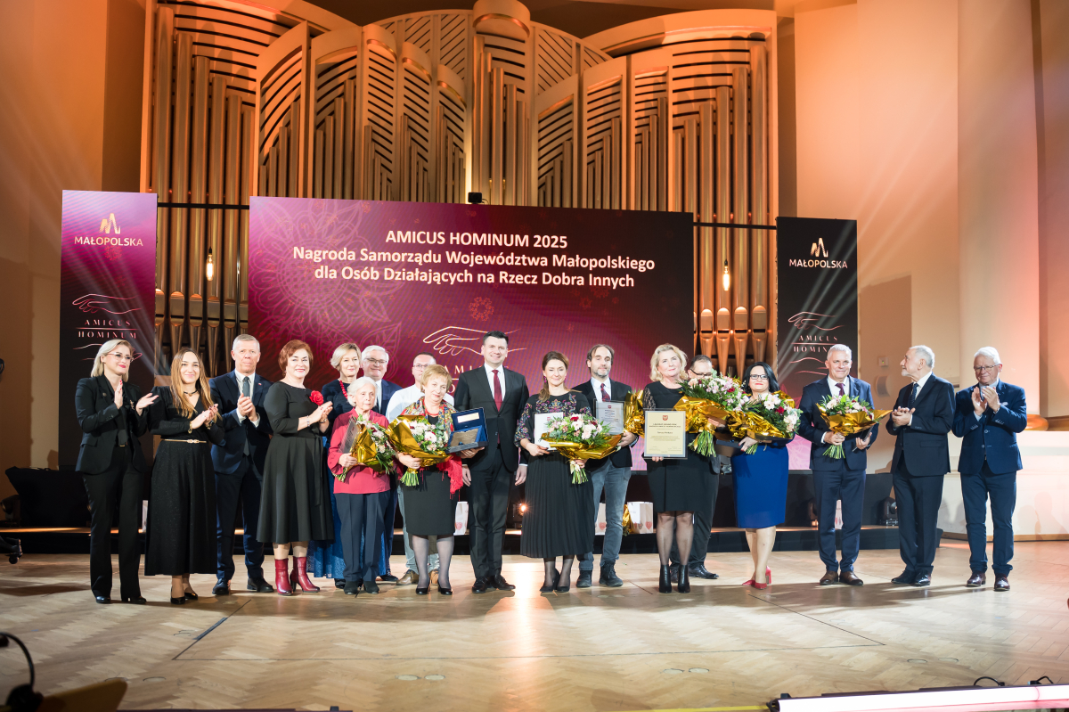 Galę wręczenia nagród „Amicus Hominum” oraz „Kryształy Soli” 2025, które honorują małopolskie organizacje pozarządowe, poprowadzono w podniosłej atmosferze krakowskiej filharmonii. W wydarzeniu wzięło udział ponad 600 osób – przedstawicieli samorządu, świata nauki, kultury, biznesu oraz laureatów i ich bliskich.
