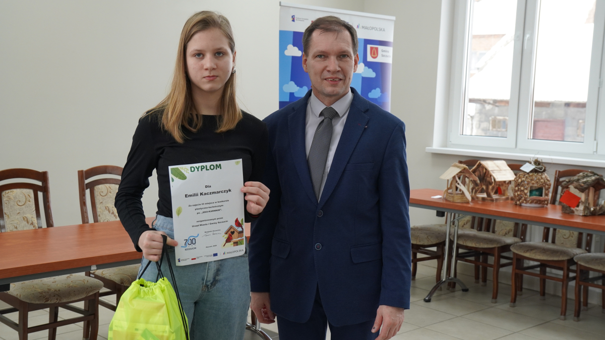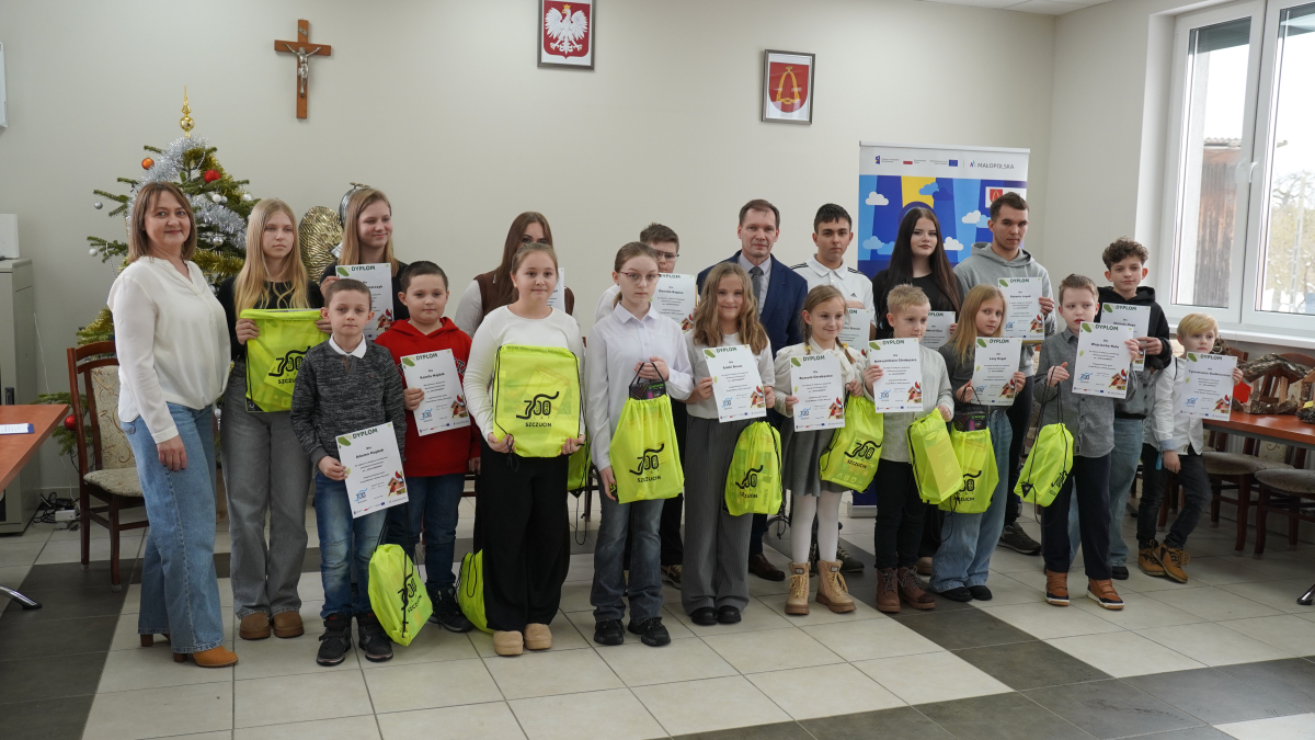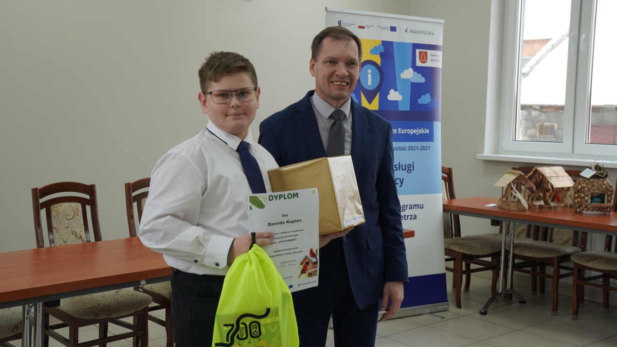 12 stycznia 2026 r. – W sali narad Urzędu Miasta i Gminy Szczucin Burmistrz Tomasz Bełzowski uroczyście wręczył nagrody i dyplomy zwycięzcom i wyróżnionym uczestnikom konkursu „Eko-Karmnik”.