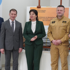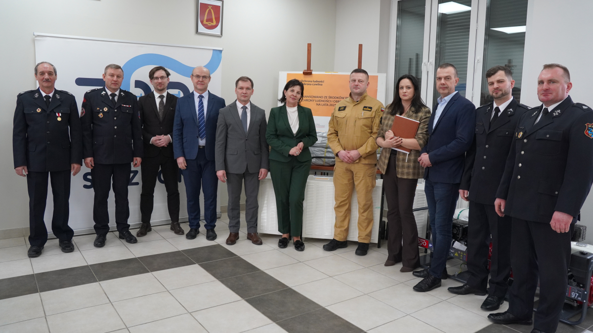W dniu dzisiejszym, 22 stycznia 2026 roku, odbyła się uroczystość przekazania specjalistycznego sprzętu oraz podsumowanie zadań zrealizowanych w ramach dotacji pn. „Realizacja zadań ochrony ludności i obrony cywilnej w Gminie Szczucin w 2025 roku”. W wydarzeniu wzięli udział Pani Lucyna Gajda – Dyrektor Generalny Małopolskiego Urzędu Wojewódzkiego w Krakowie oraz Pan Piotr Łosiński – Kierownik Delegatury Małopolskiego Urzędu Wojewódzkiego w Tarnowie, którzy reprezentowali Wojewodę Małopolskiego Krzysztofa Jana Klęczara.