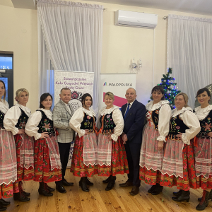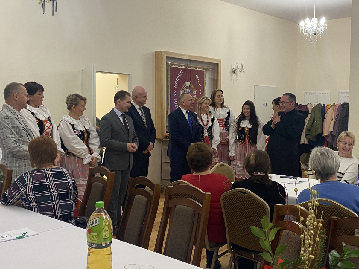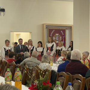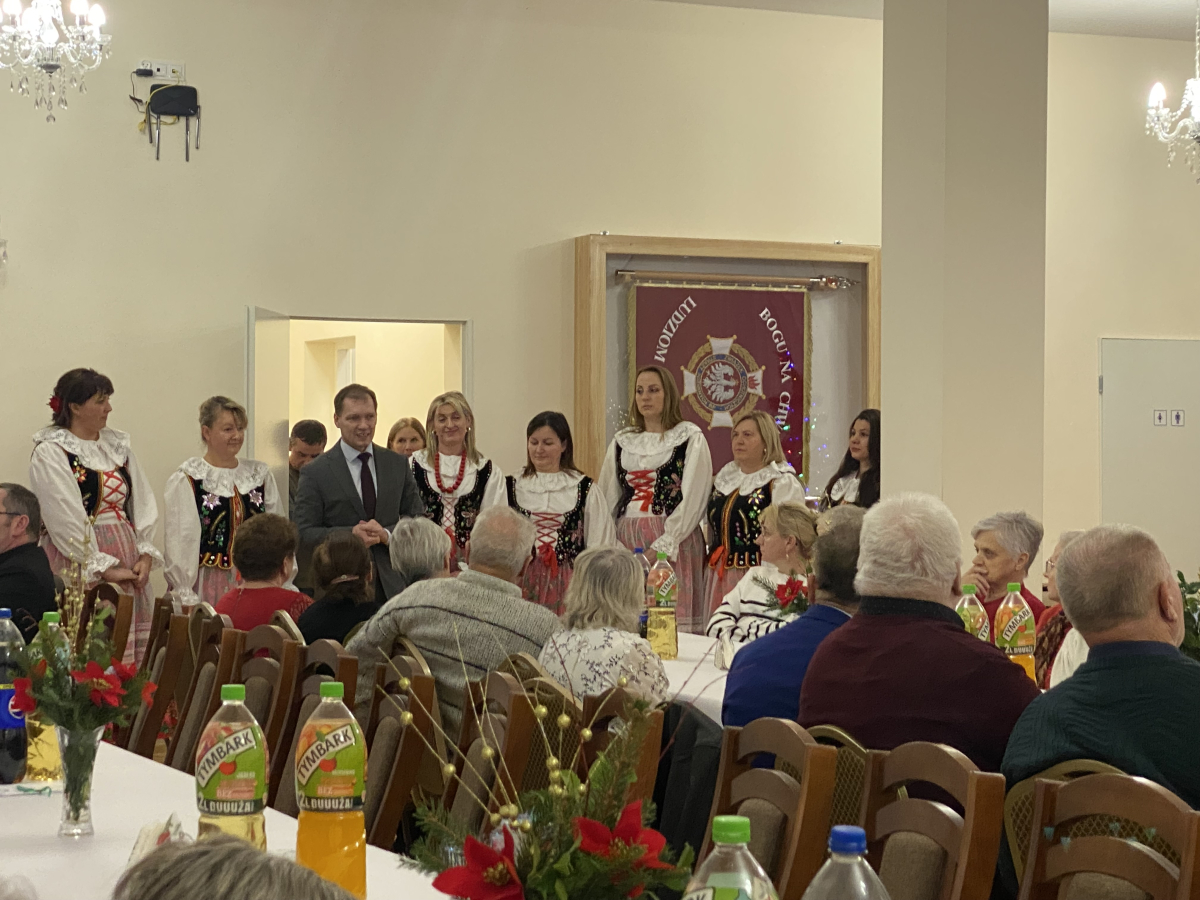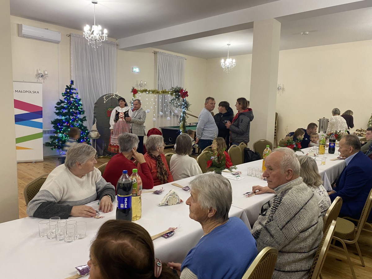 Podczas spotkania członkinie stowarzyszenia przygotowały tradycyjne potrawy wigilijne, w tym m.in. barszcz czerwony, kapustę z grzybami, pierogi z kapustą i grzybami, a także ciasta, takie jak makowiec czy serowiec, które stanowiły słodki akcent wieczoru. W części artystycznej zaprezentowano występ członków stowarzyszenia, którzy odśpiewali znane kolędy oraz mniej popularne, dawne pastorałki. Występujący zaprezentowali się w nowo zakupionych strojach ludowych, co dodatkowo podkreśliło tradycyjny charakter wydarzenia.