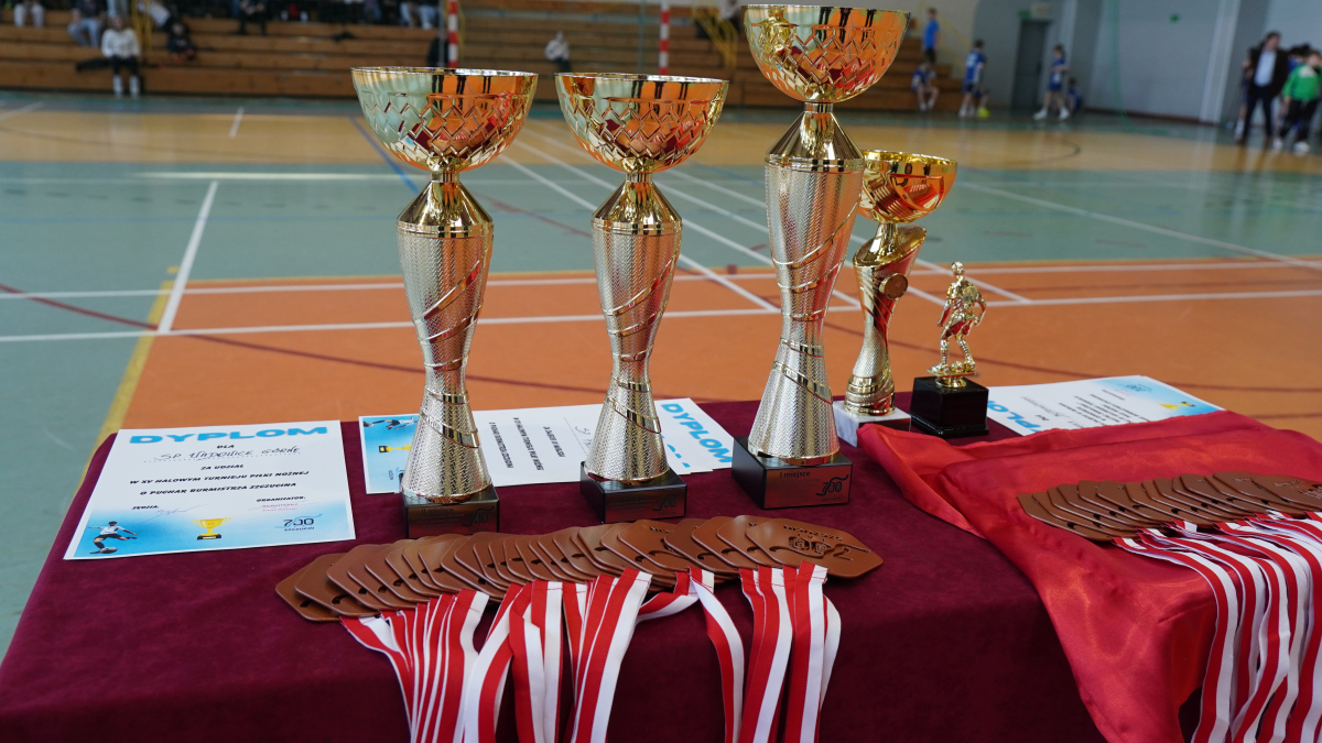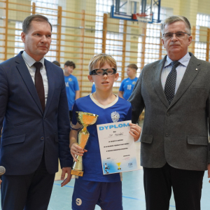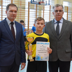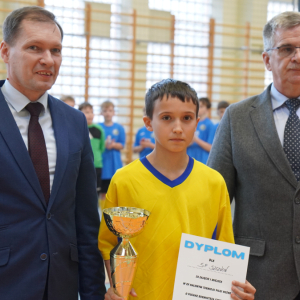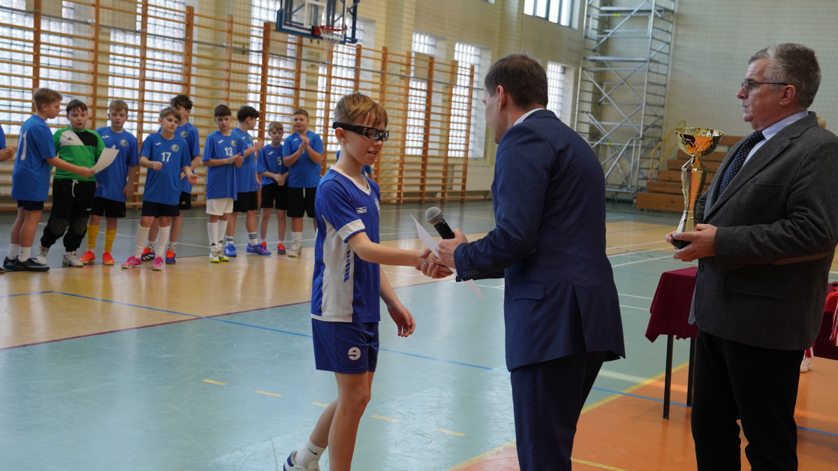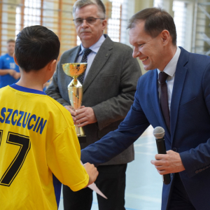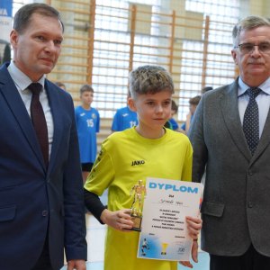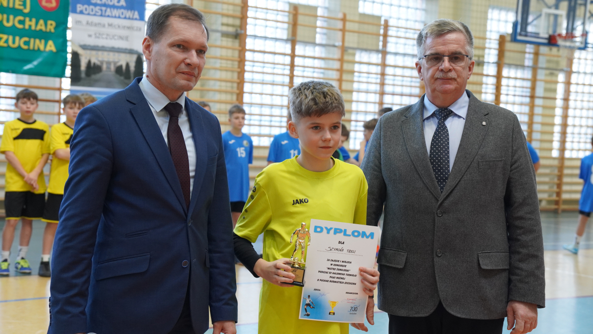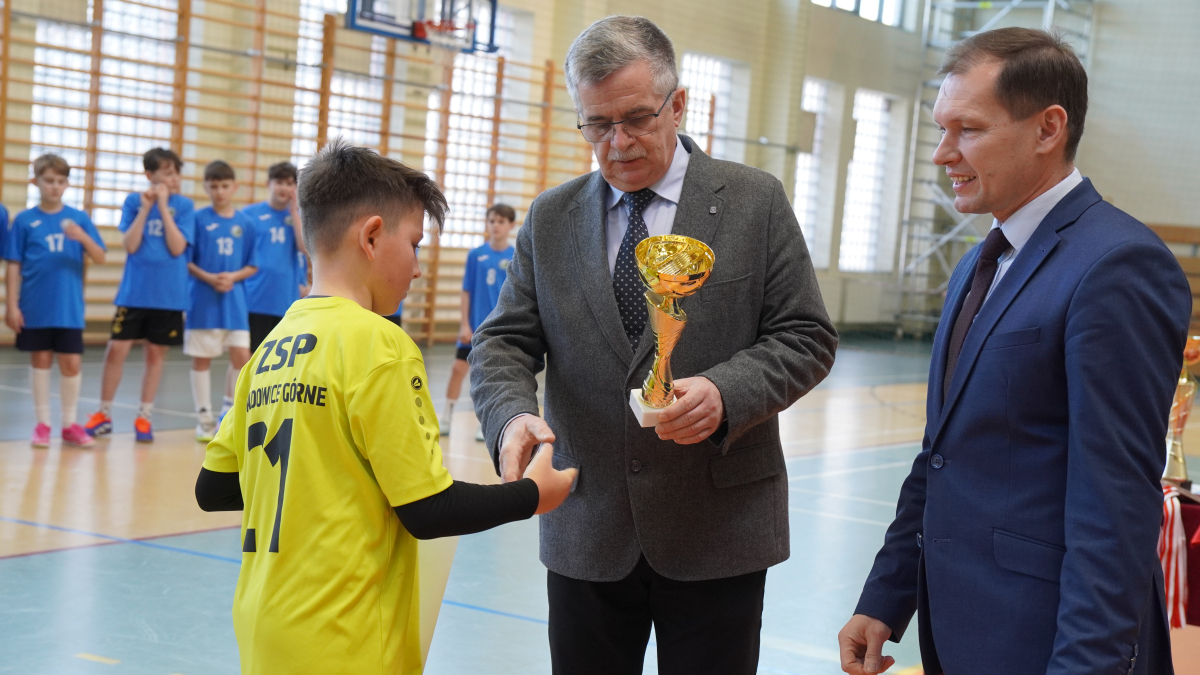 Puchary, medale i dyplomy zwycięzcom wręczali: Burmistrz Szczucina Tomasz Bełzowski i Dyrektor Szkoły Podstawowej w Szczucinie Marek Kupiec.