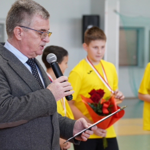 Miłym akcentem przed dekoracją zwycięzców było podziękowanie dla Pani Barbary Nawrot – nauczycielki wychowania fizycznego z Pacanowa za udział z uczniami we wszystkich 15-tu edycjach tego turnieju.