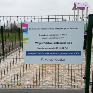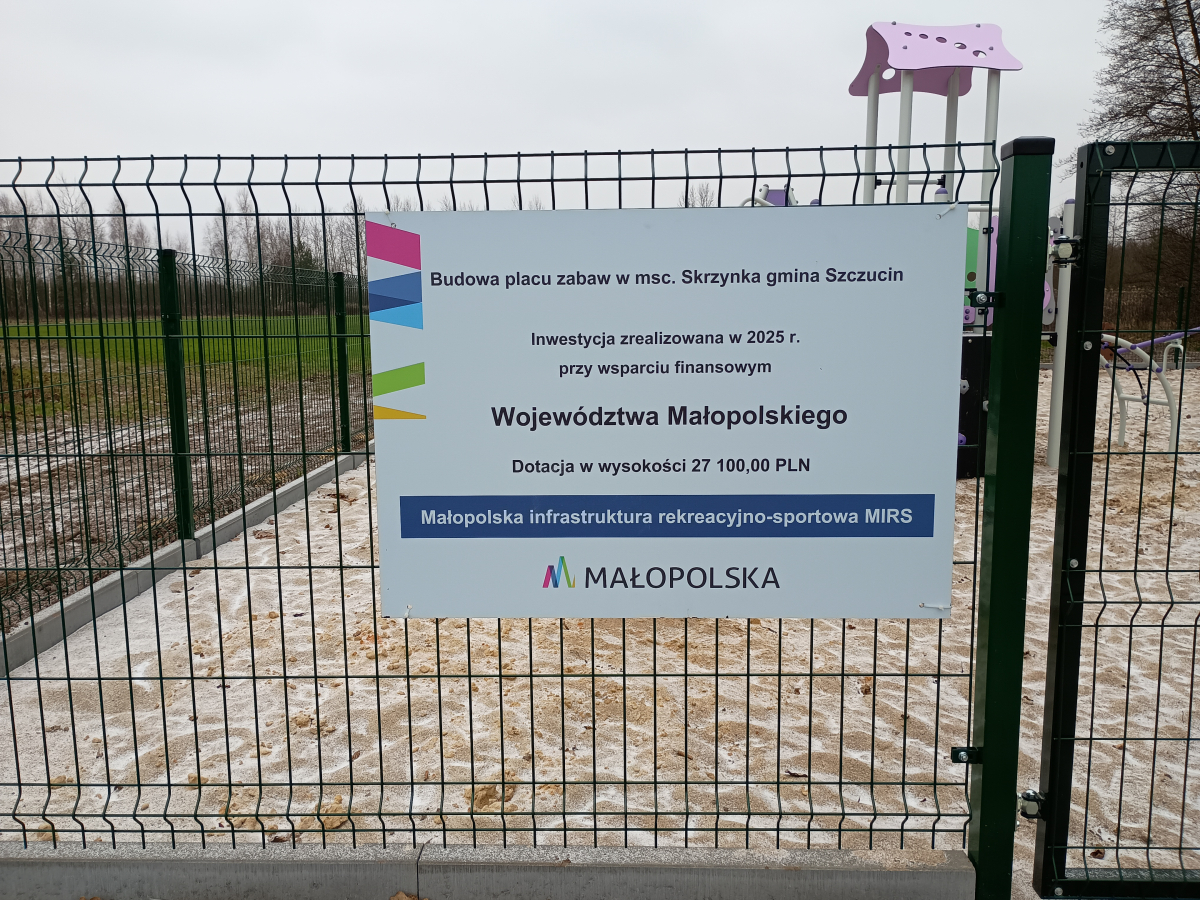 W grudniu 2025 r. zakończono realizację zadania pn. „Budowa placu zabaw w msc. Skrzynka gmina Szczucin”. Celem inwestycji było stworzenie bezpiecznej, estetycznej i funkcjonalnej bazy edukacyjno‑sportowo‑wypoczynkowej dla mieszkańców, a w szczególności dla dzieci.