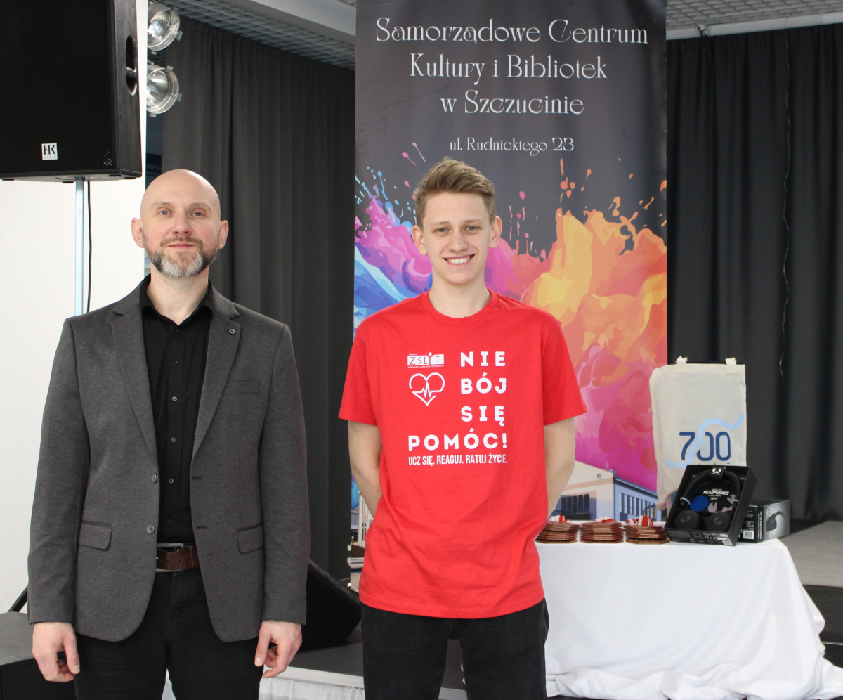 Serdeczne podziękowania za organizację dla Samorządowego Centrum Kultury i Bibliotek, a w szczególności za bezbłędną obsługę techniczną całego turnieju kierujemy do Pana Kacpra Gądka. Jego zaangażowanie i profesjonalizm były kluczowe dla sprawnego przebiegu zawodów.